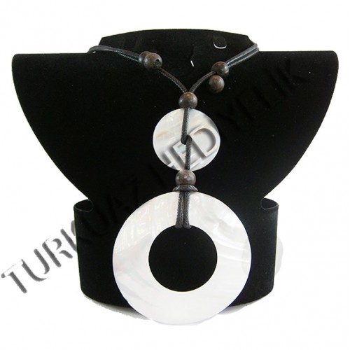 SEDEF KABUK KOLYE - KABİBİ HALKALI / SİYAH İPLİ
