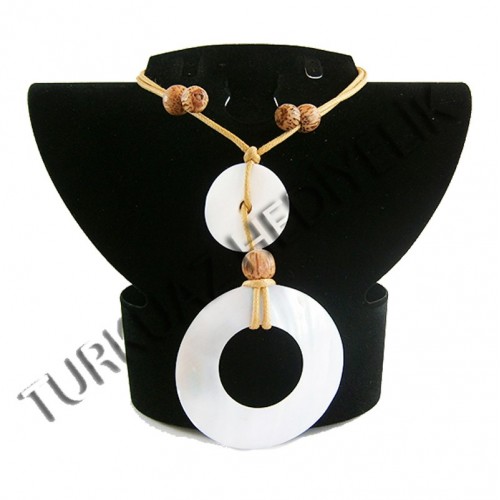 SEDEF KABUK KOLYE - KABİBİ HALKALI /KAHVERENGİ İPLİ