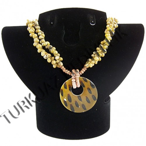 • SEDEF KABUK KOLYE  - YEŞİL YUVARLAK HALKALI