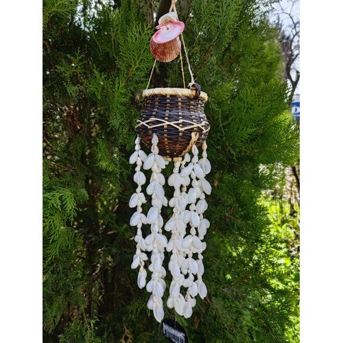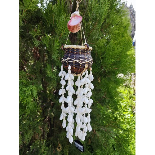 Doğadan gelen ses: deniz kabuklu rüzgâr çanı.Boyasız, tamamen kabukların kendi doğal renkleriyle; hafif esintide huzur, her tınıda deniz hissi.
