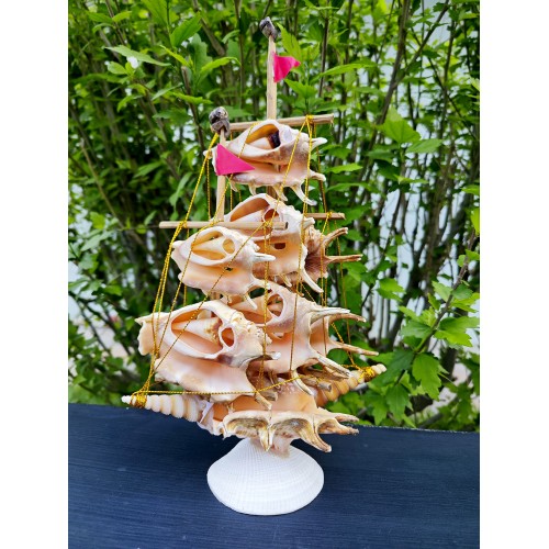 Gerçek deniz kabuklarından, boyama yapılmadan tamamen el işçiliğiyle üretilmiş, şık hediyelik ve ev dekoru – Boyut: 28 cm