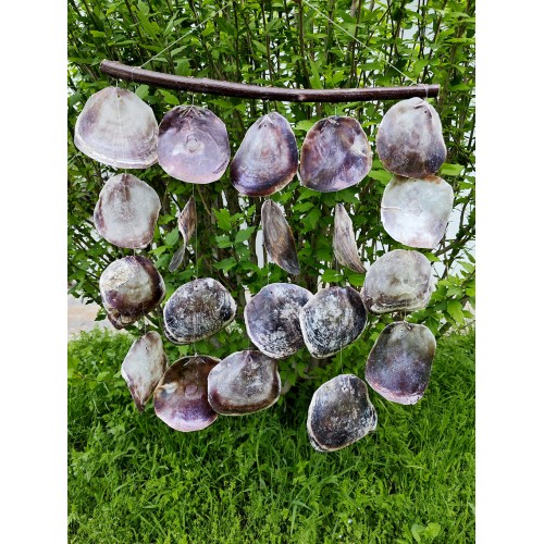 Naturel malzeme ile placuna sedefinin birleştirerek tasarlanmış rüzgar çanı.