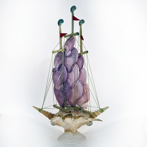 Deniz kabuğu gemiler kabukların kendi renkleri korunarak yapılmıştır,herhangi bir boyama yoktur..Vakum kaplama ile satışa sunulmuştur. Yükseklik : 29 cm