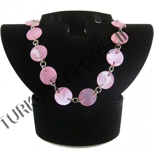 SEDEF KABUK EKLİ KOLYE - YUVARLAK / PEMBE