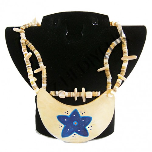 Naturel Sedef Kabuk Yarımay Şeklinde KesilerekÜzerine Desen İşlenmişŞık Bir Kolye.